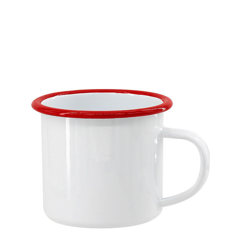 ENAMEL MUG 12oz WHITE + RED rim