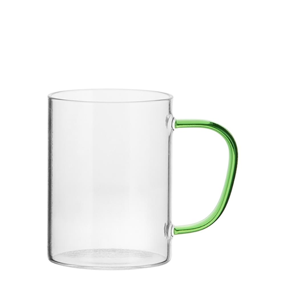 Glass Mug 12oz (Clear) GREEN Light handle
